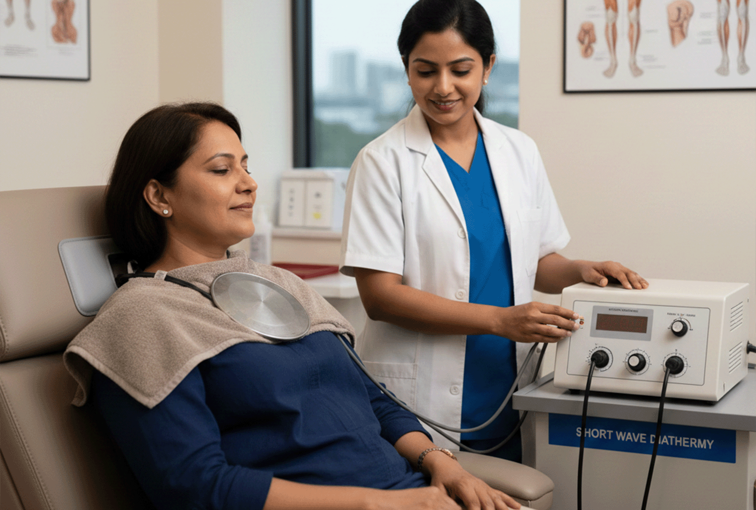 Our Short Wave Diathermy (SWD) therapy delivers deep heating to tissues using high-frequency electromagnetic waves. This helps reduce muscle tension, enhance circulation, and accelerate soft tissue healing.